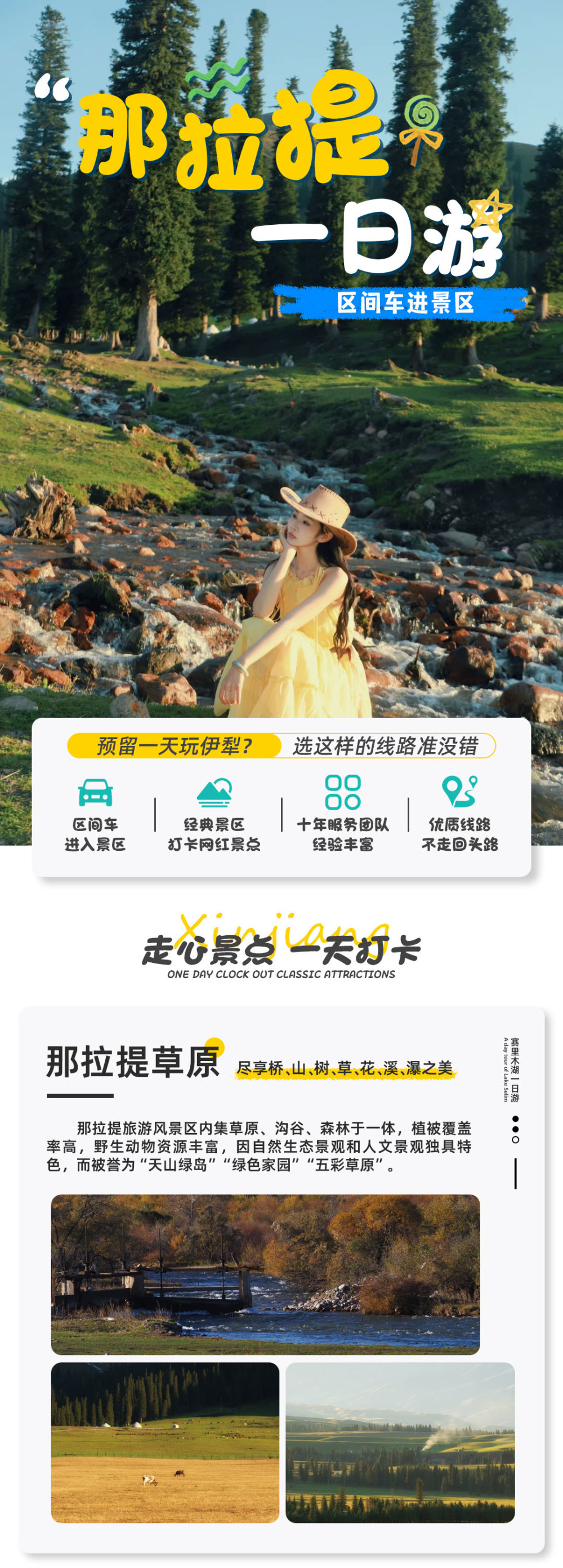 换取门票后乘景区区间车游览世界四大高山河谷草原——【那拉提草原】(含门票,含空中草原区间车)来到那拉提草原,扑面而来的是一望无际的绿色的海洋,,哈萨克牧民的毡房,真的被她的 美 丽震撼了